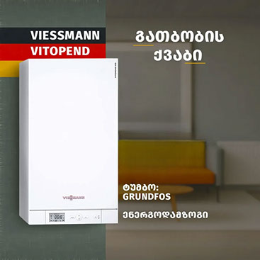 • Viessmann 12 kW — იდეალურია მცირე ზომის ბინებისთვის, ენერგოეფექტური და კომპაქტური სისტემა.